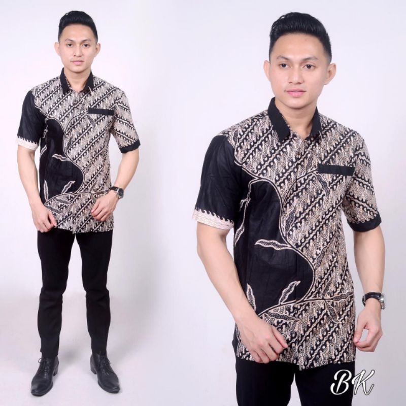 Name: Kemeja Batik Pria Lengan Pndek Hitam Putif Cream Motif Seno Rilies